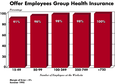 - Almost all worksites offer group health insurance